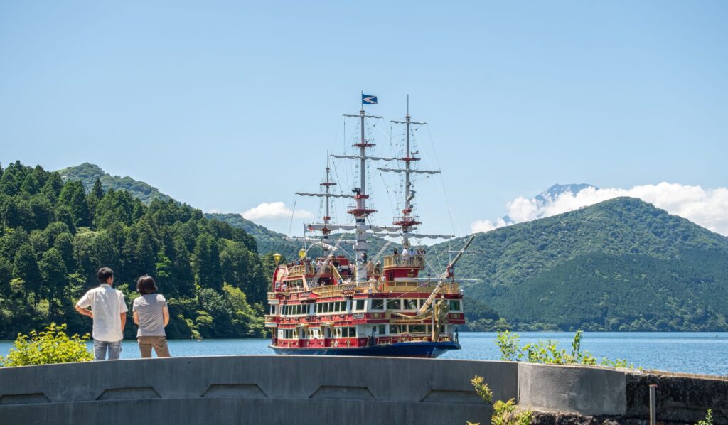 From the ropeway you can see the mountains and Lake Ashi; the scenery changes with the seasons, and Mt. Fuji is visible on clear days.