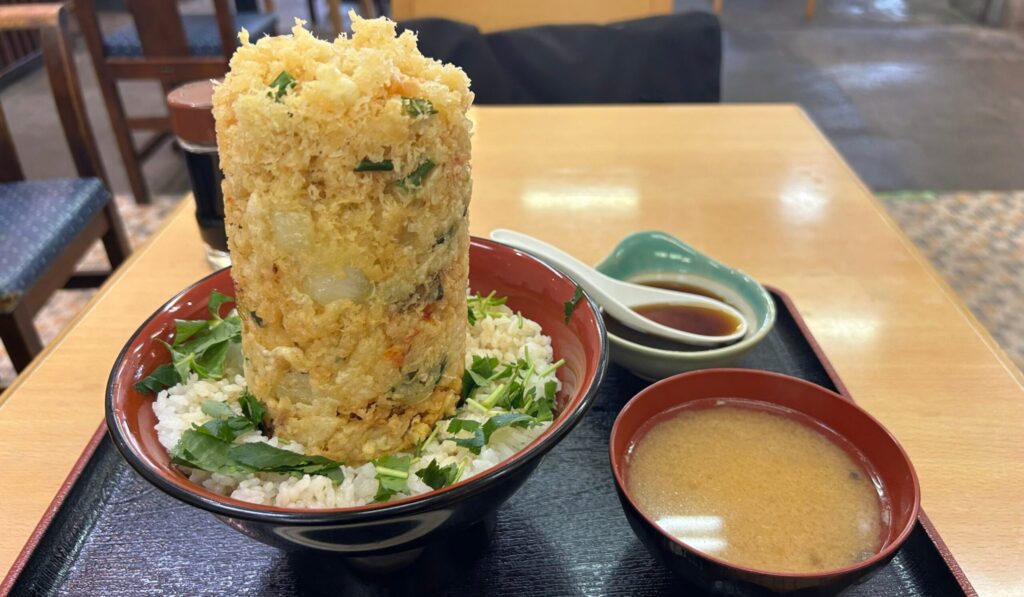 In particular, the patented “Seafood Kakiage-don” (Mixed Seafood Tempura Bowl) features a tower of tempura so high it is visually striking—many people visit just to take photos.