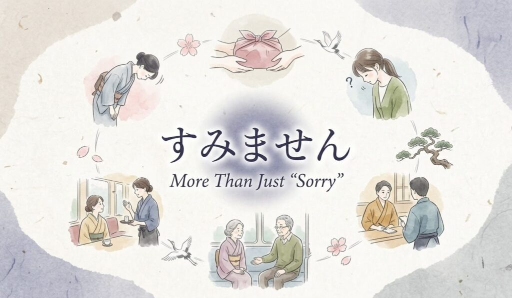 You’ve probably learned that すみません (sumimasen) means “I’m sorry” or “Excuse me.” But if you pay attention in Japan, you’ll hear people saying it constantly—even when no apology is needed.